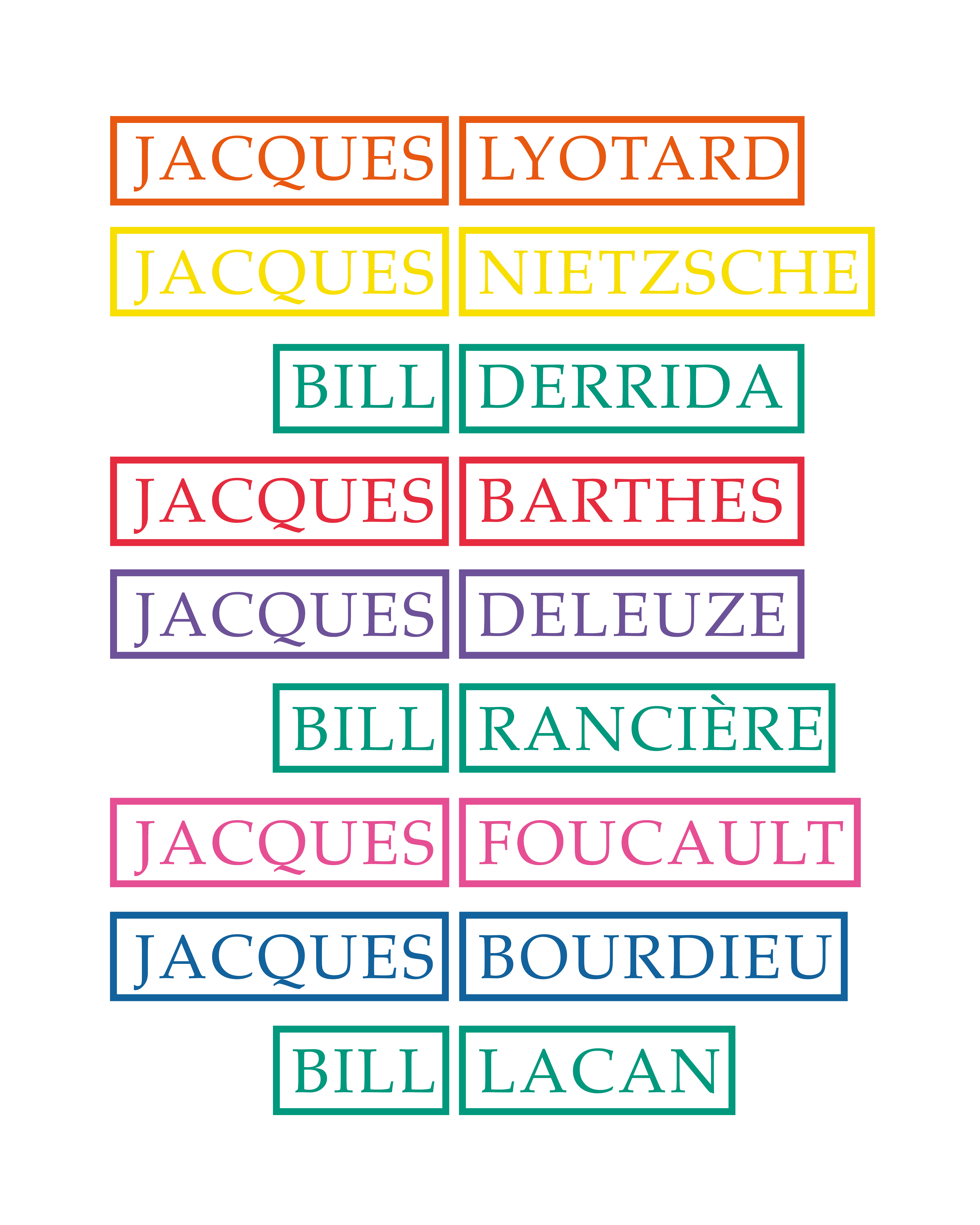 All the great French Thinkers (with the notable exception of Nietzsche) have said many things; therefore, and in accordance with the french child’s game « Jacques said, » they are all named Jacques but not to be offside, those who are effectively named « Jacques » become « bill ».