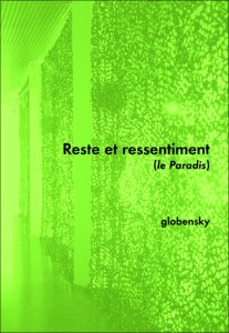 Ce catalogue de l’exposition Reste et ressentiment (le Paradis), du plasticien multimédia Christian Globensky, se présente sous la forme d’un dossier pédagogique. Le titre de l’exposition nous promet de plonger aux origines du langage pour désigner un jardin qui ne cesse de se refermer sur lui-même, le Paradis : se protéger ou en exclure les indésirables ? Dès lors la question posée, l’horreur guette l’intrus. Il lui faut franchir un portique tonitruant, puis un champ de mines conceptuelles, se frotter à du barbelé… Une plaque tectonique interactive ébranle l’univers sonore de cette scénographie tout en camouflage où des valises lumineuses délivrent d’étranges messages. Un dossier thématique, auquel ont participé des personnalités telles que Bill Cook, Roger-Pol Droit, Denis Jeffrey, ou Damien Sausset se propose de d’élucider cette question : quelle est la place de l’athéisme dans l’art contemporain ?