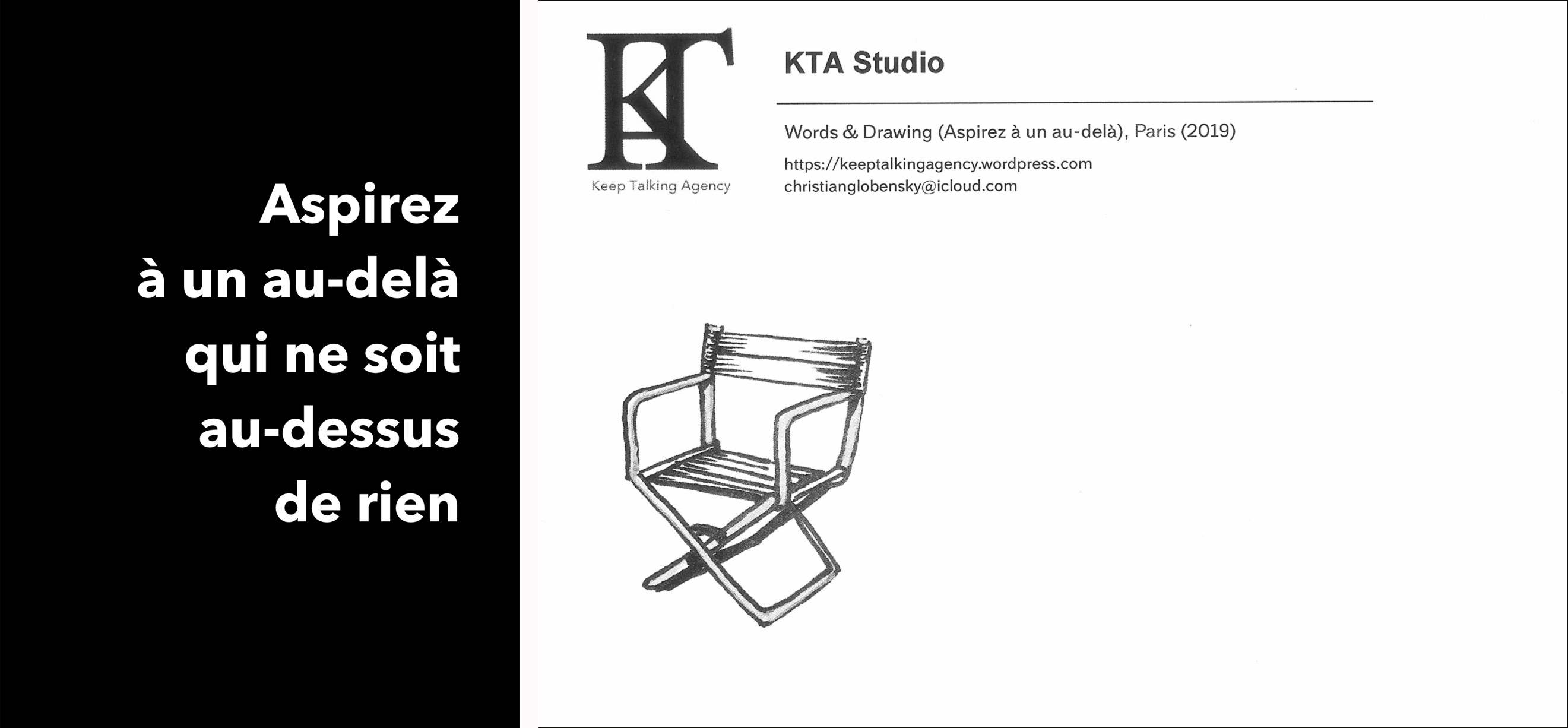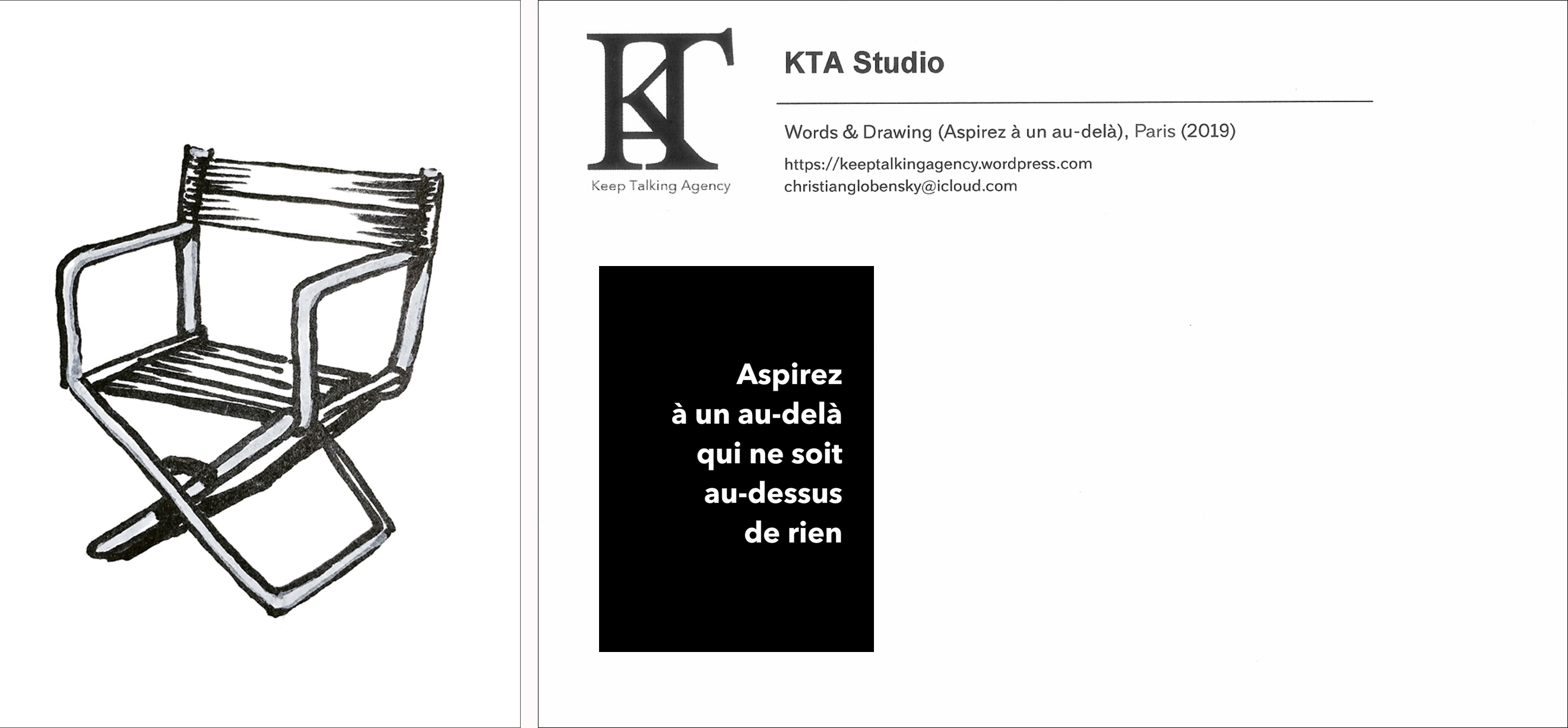 WORDS & DRAWING DUO Left: Words & drawing DUO (chaise). Carte postale, 10x15cm. KTA Studio, 2019. Right: Words & drawing DUO (Chaise). Carte postale, 10x15cm. KTA Studio, 2019.
