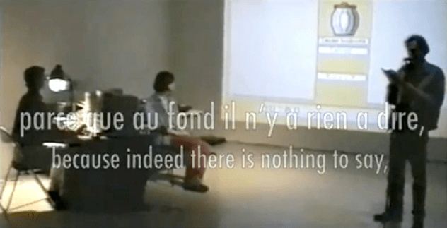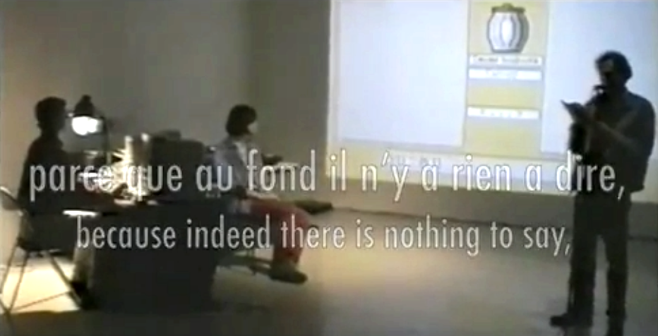 « A series of videos borrowing the structure of the televised message (pub, clip, spot) each episode, under the aegis of a historical figure, engages a discourse against the received ideas, the standardization of the thought and the inattention the details and the specificity of all mental constructions, sometimes funny, sometimes tragic, the series of videos art pub, reveals to us the idea of a distance to oneself, banal threat in the hollow of which one builds the desire as the l identity of modern egos. » Christophe Domino