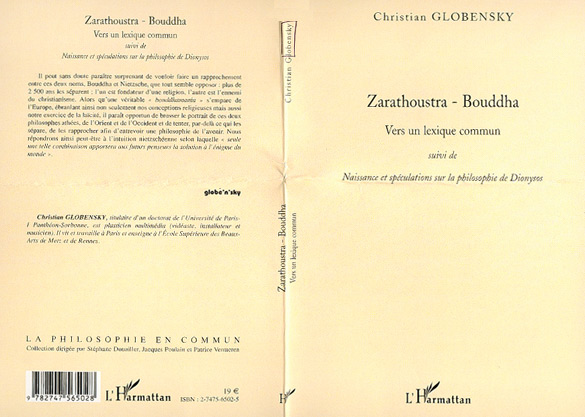 GLOBENSKY Christian, Zarathoustra–Bouddha. Vers un lexique commun, suivi de Naissance et spéculations sur la philosophie de Dionysos, Paris, l’Harmattan, 2004