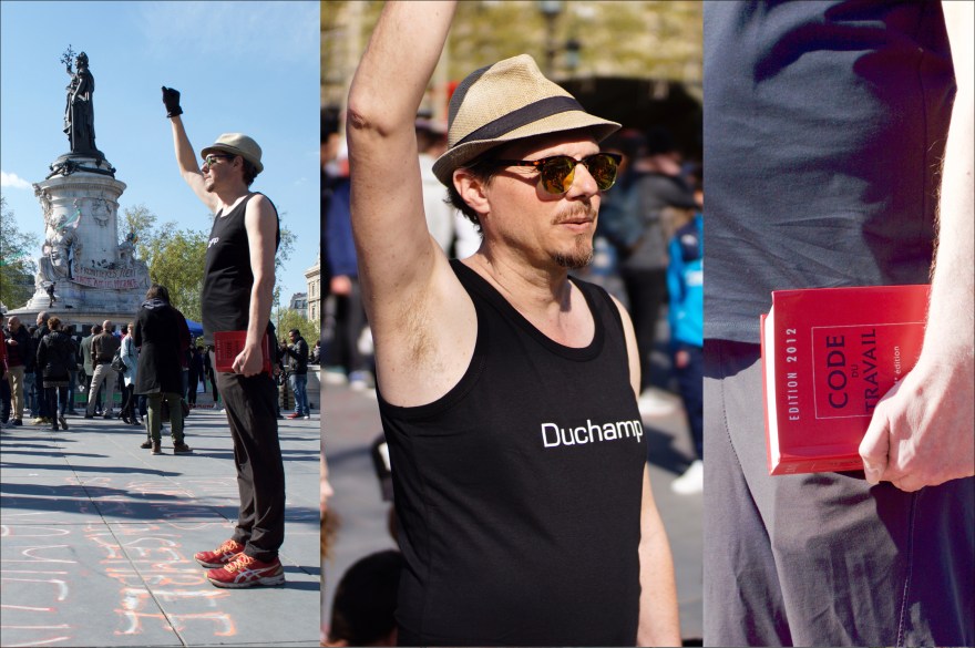 Christian Globensky, performance 19’68” Paris Nuit Debout, le 1er mai 2016, place de la République, Paris
